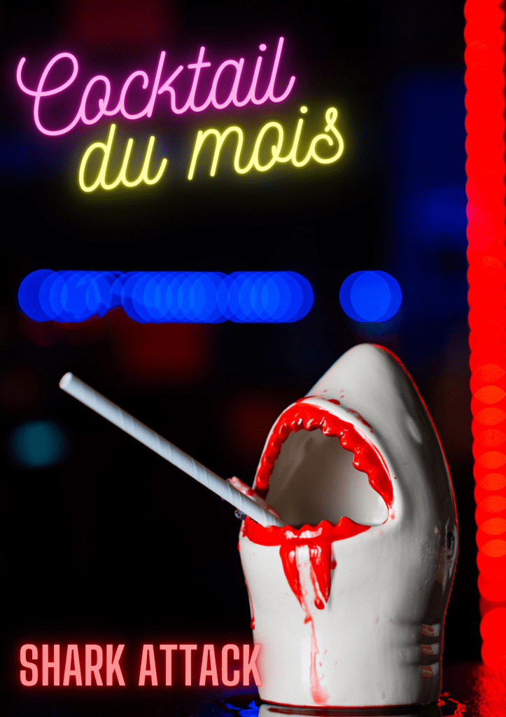 Notre carte cocktail possède 15 cocktails, tous différents les uns des autres. Chaque mois, un nouveau est disponible. voici le cocktail du mois de Mars : le SHARK ATTACK ! ❄️