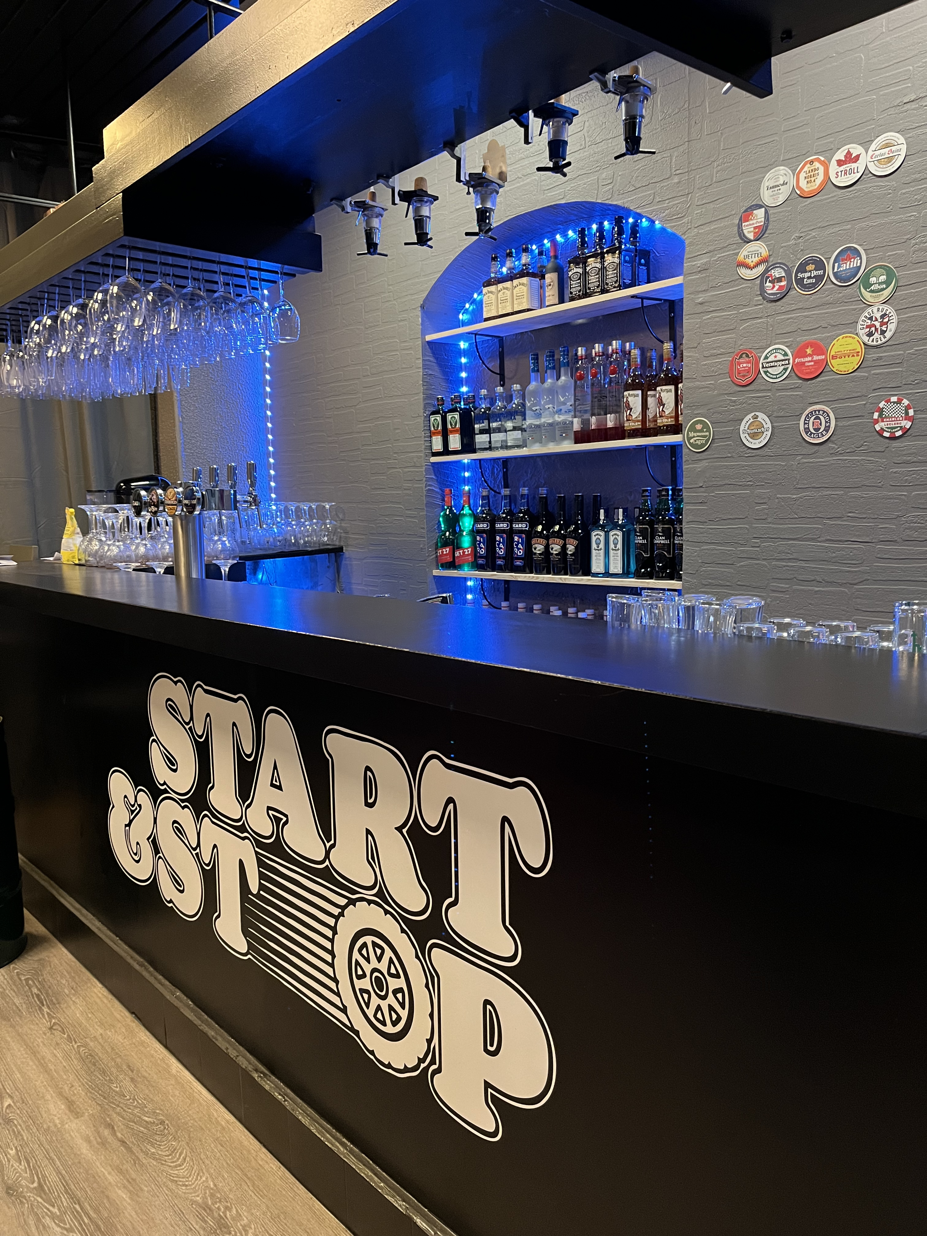Le Start&Stop possède 2 bars : un bar à vins, bières & spiritueux d’un côté et un bar à cocktails de l’autre; ainsi que 2 terrasses : une extérieure, en devanture, et une intérieure de 100m2.