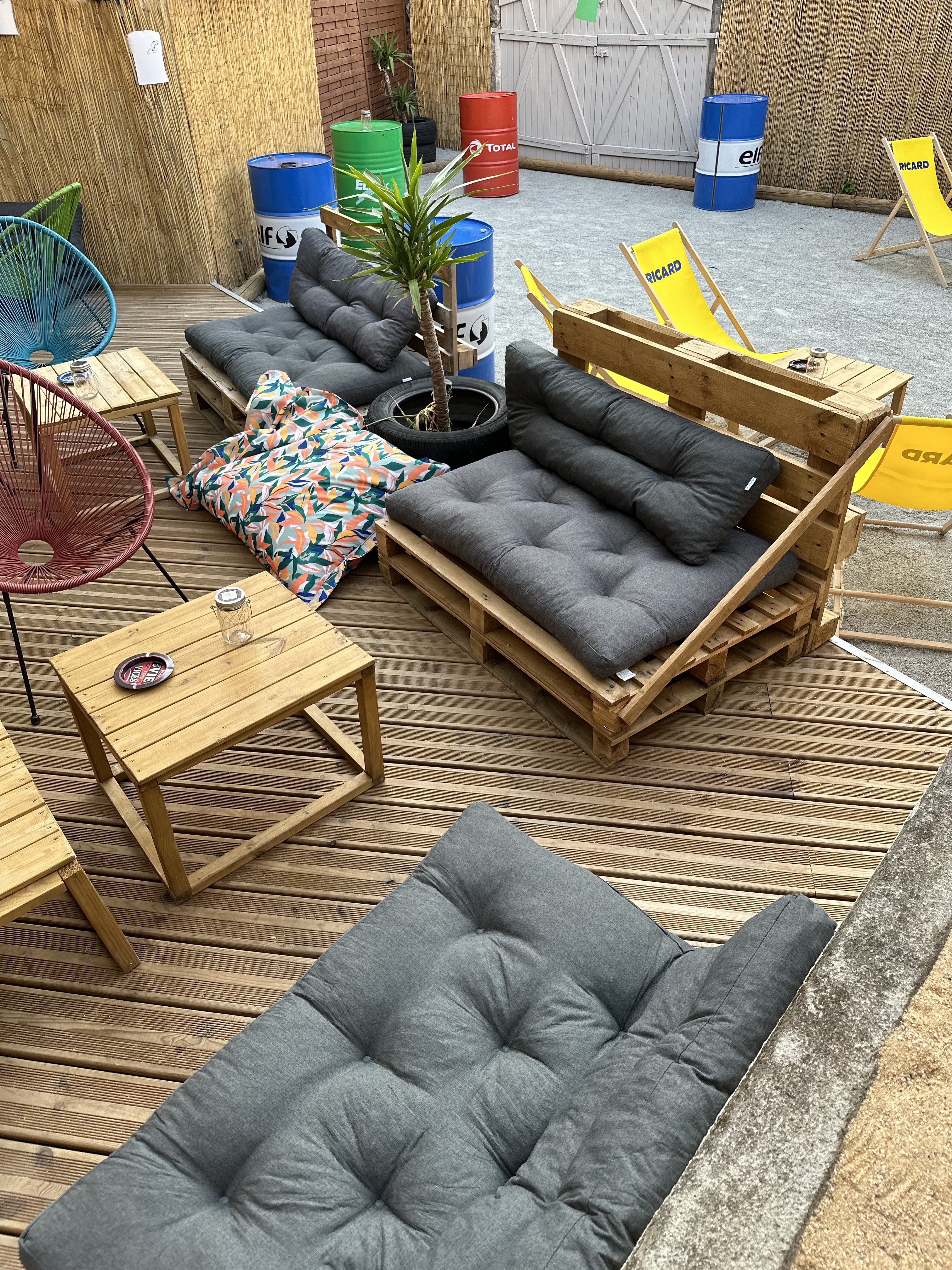Le charme du Start&Stop réside dans sa terrasse intérieure de 100m2. L’ambiance guinguette et chaleureuse de cet espace vous offrira l’impression d’être au bord de la mer. Il possède également un coin ensoleillé et ombragé. Un terrain de pétanque est aussi à disposition.